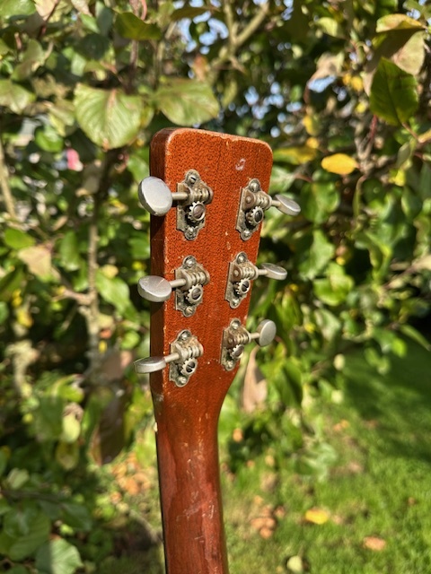 A simply gorgeous example of the mid-50's D-21. All original excluding the tuners which are of the period and in immaculate condition inside. Beautiful brazilian rims and back with great color and wear. Just how we like to find them. Factory fresh inside with a bit of evidence that it's been around some 68 years on the outside. Oh, and crack free. And the sound: well, you gotta play it to know it.